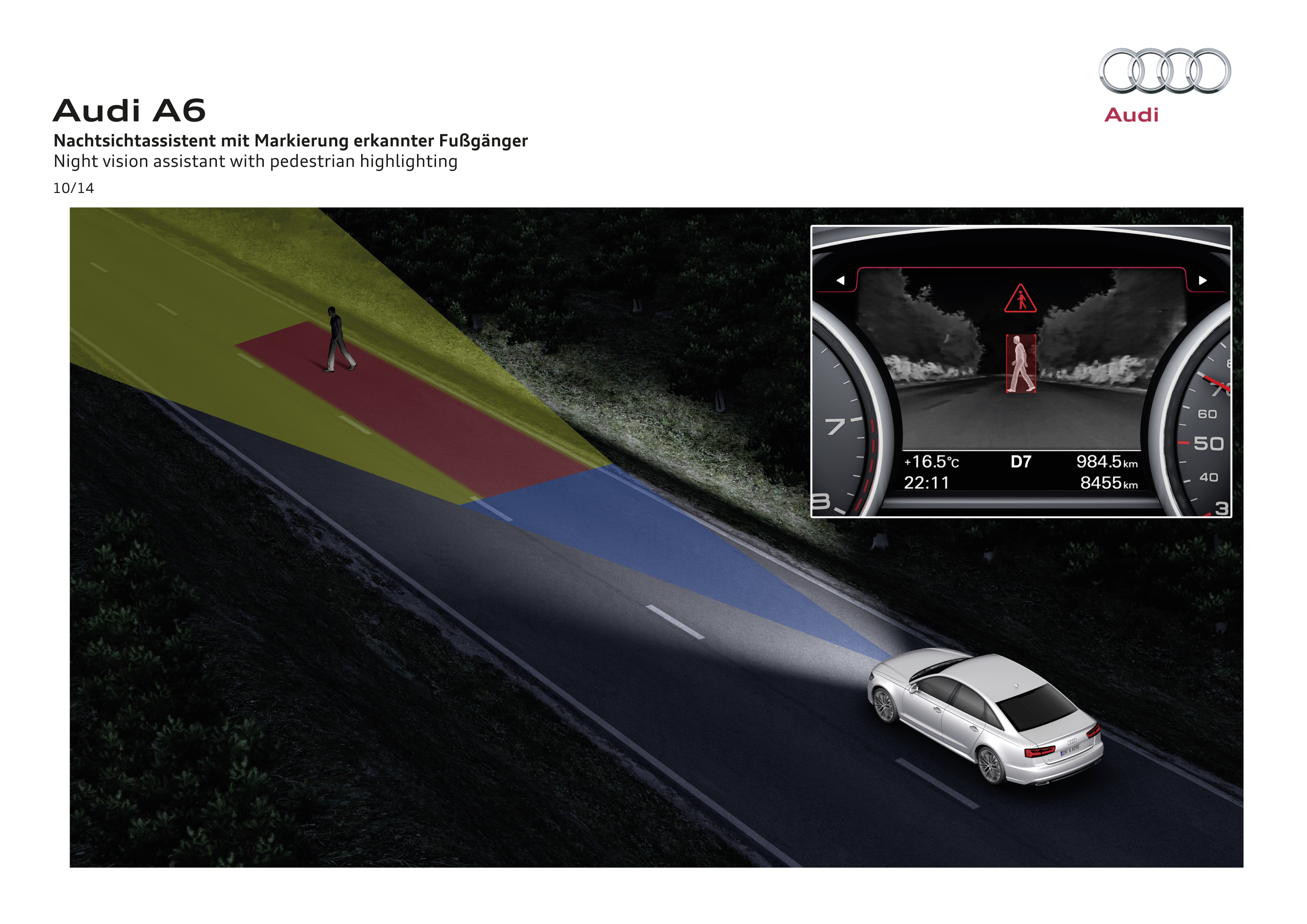 21 A6 FussgaengerCzy muszę tłumaczyć, co było dalej? Przejechałem ponad 100 km drogi ekspresowej w strasznych warunkach pogodowych, wpatrzony w ekranik, bezkarnie i bezpiecznie utrzymując stałą prędkość ok. 110 km/h i niemal zupełnie zrelaksowany dotarłem do domu tuż po północy – choć optymistycznie zakładałem jakieś 3 godziny więcej na podróż.