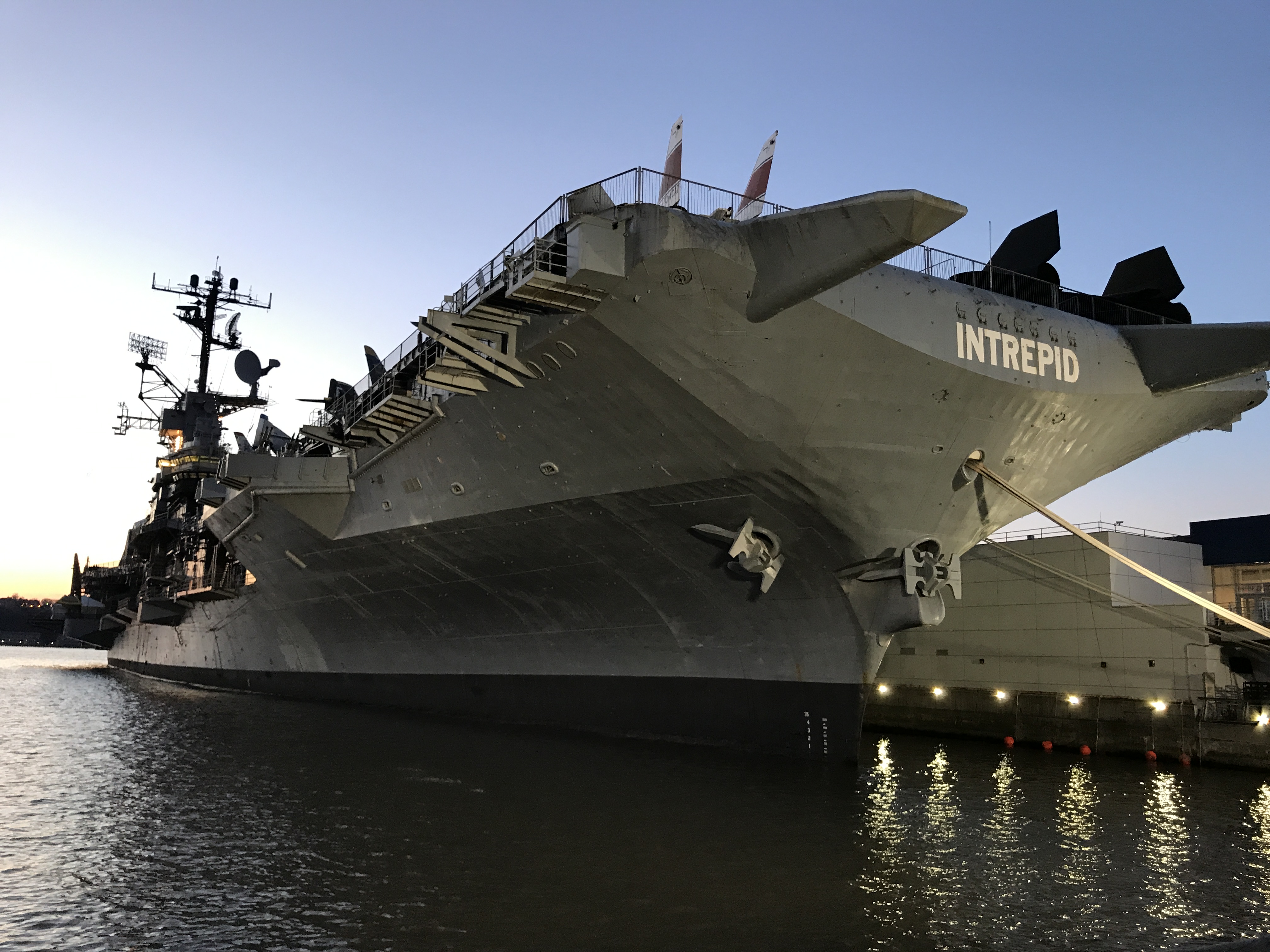 Na lotniskowcu Intrepid (weteran trzech wojen, II światowej, koreańskiej i wietnamskiej) jest wystawa lotnicza. W hangarze po lewej kryje się wahadłowiec Enterprise. Na pokładzie stoją m.in. dwa polskie samoloty, jeden z polskich barwach, a także legendarny „BlackBird”